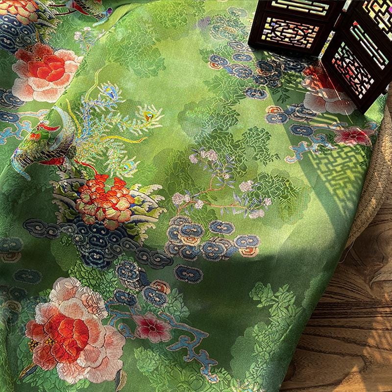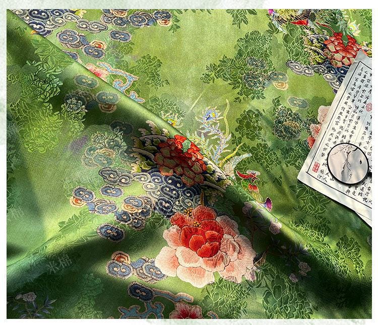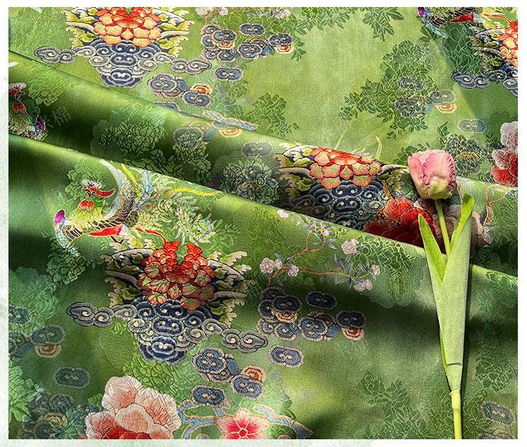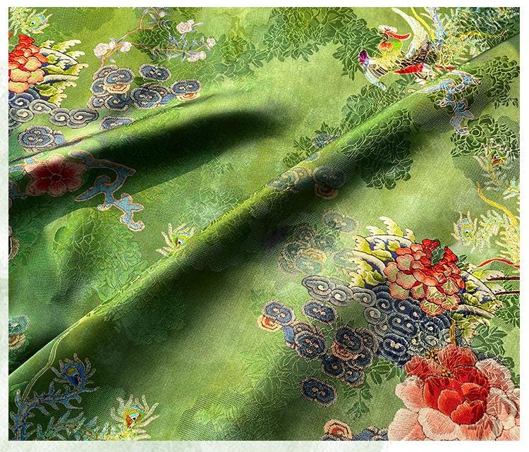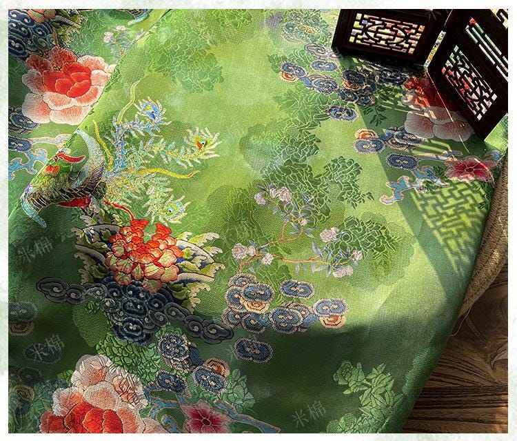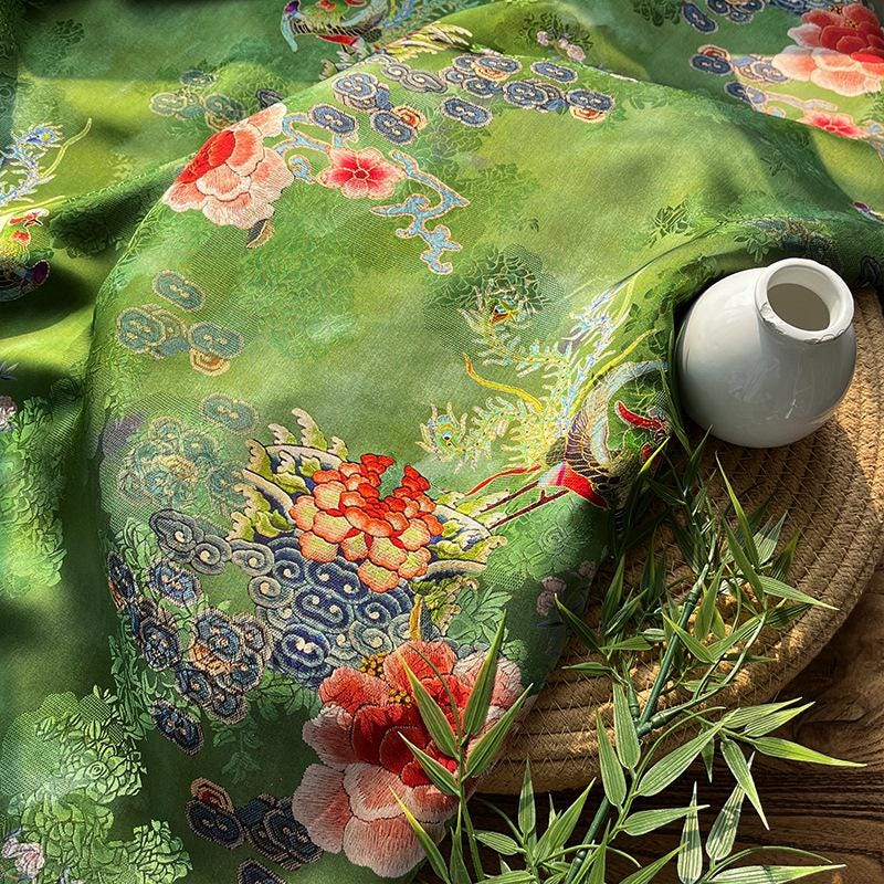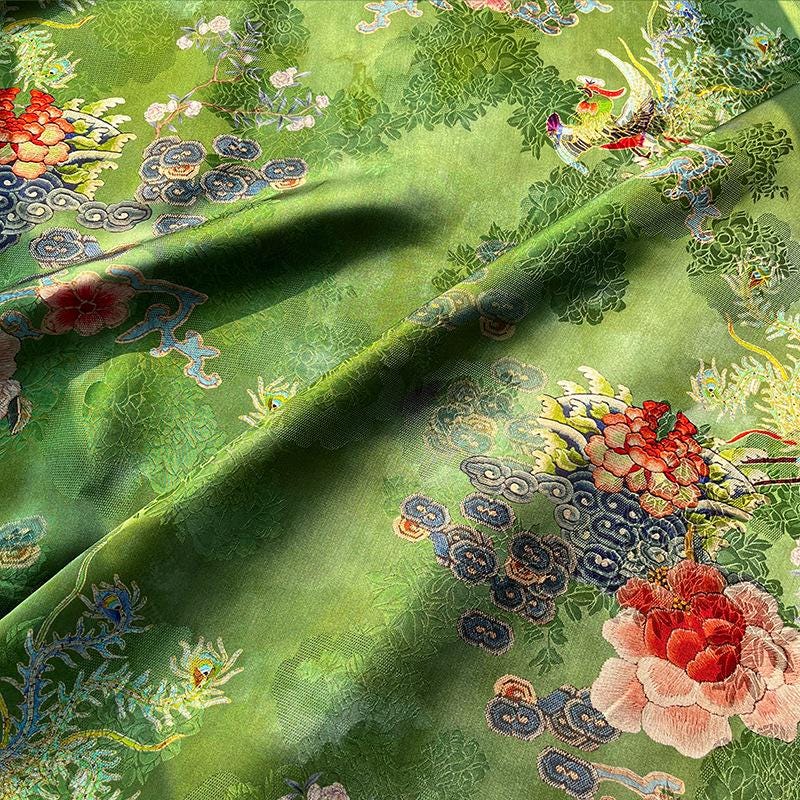 Rayon Silk Jacquard Xiangyun Fabric – Handmade Bisha Cuiyu Traditional Chinese Textile for Dress, Qipao, Craft, Sewing, 59"W