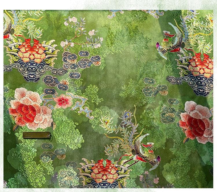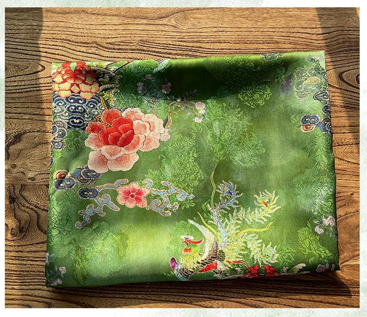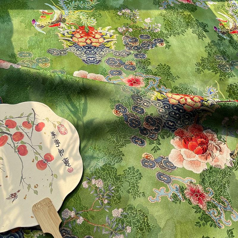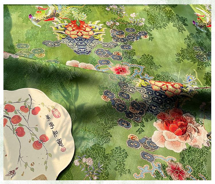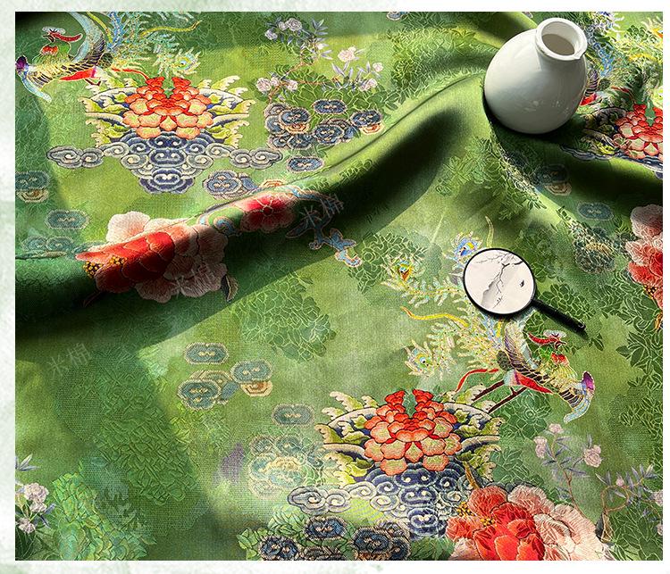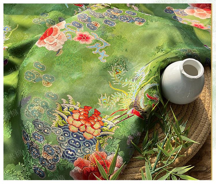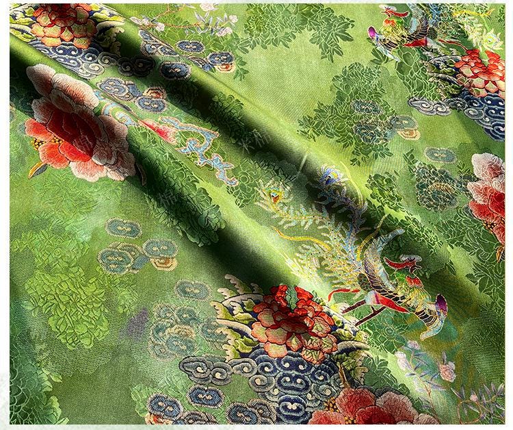 Rayon Silk Jacquard Xiangyun Fabric – Handmade Bisha Cuiyu Traditional Chinese Textile for Dress, Qipao, Craft, Sewing, 59"W