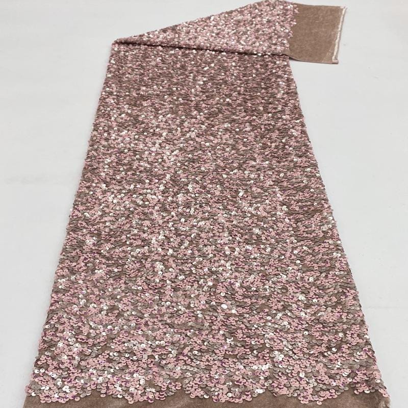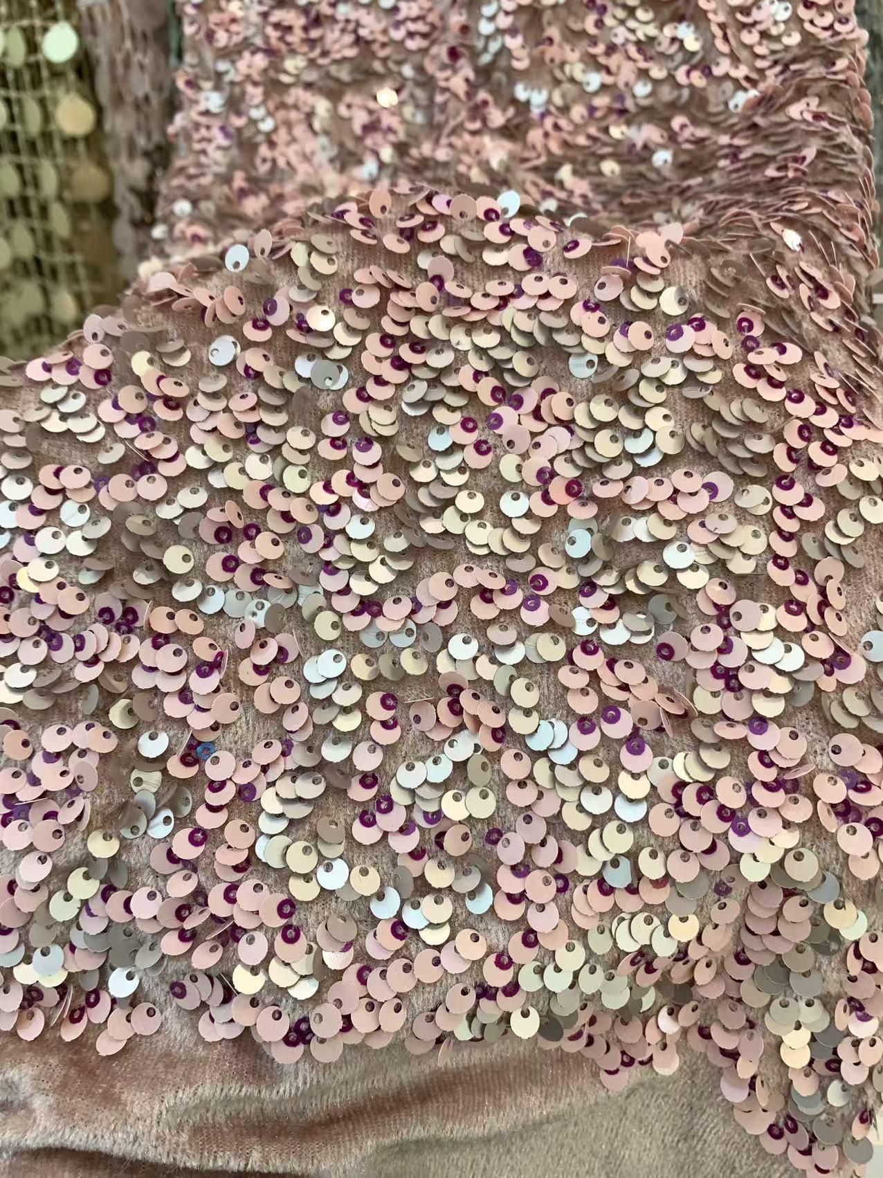 Add elegance and charm to your designs with this heavily embroidered floral sequin lace fabric featuring exquisite flower appliqué details. This high-quality fabric is perfect for creating stunning, eye-catching pieces.