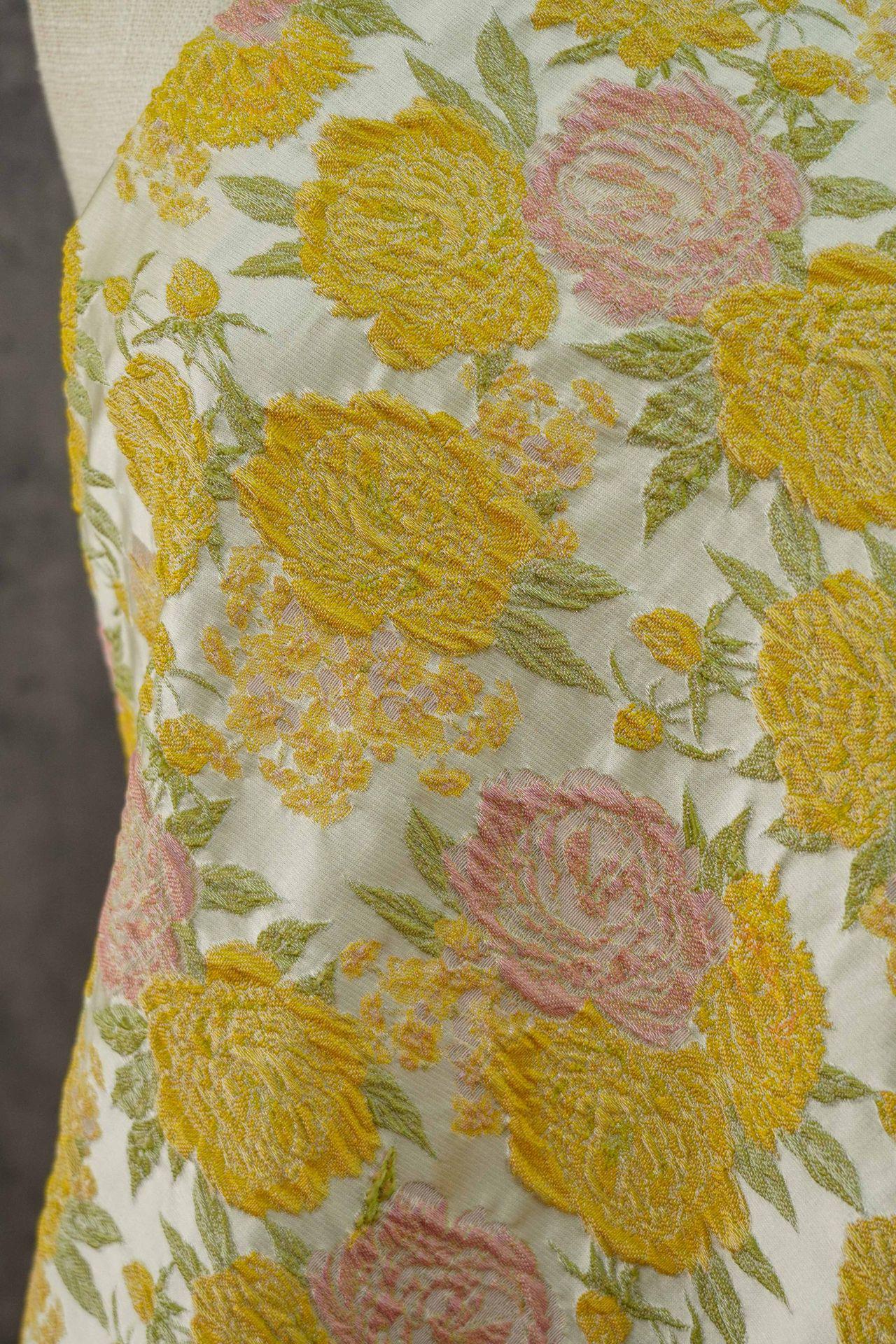 3D French Country Embossed Pink Yellow Rose Jacquard Fabric – Floral Upholstery & Dress Textile, 49"Wide