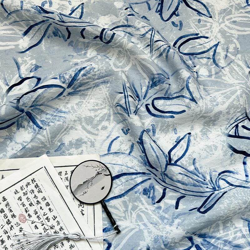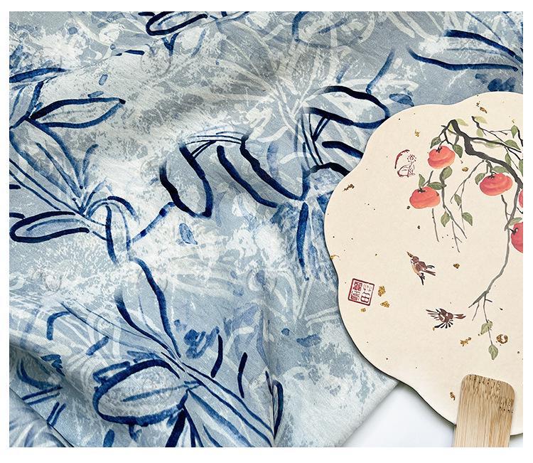 "The creative inspiration is actually the appearance of the original ready-to-wear garments. A good-looking design is printed on my ramie, which is derived from a silk painting. The antique silk paintings are kept on the base."