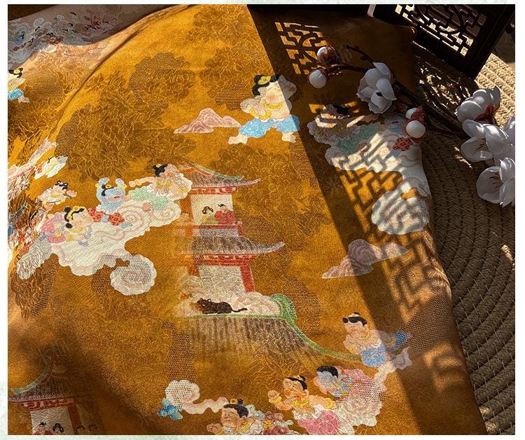 Jacquard Xiangyun Rayon Silk Fabric – Xianque Spring, 59"W