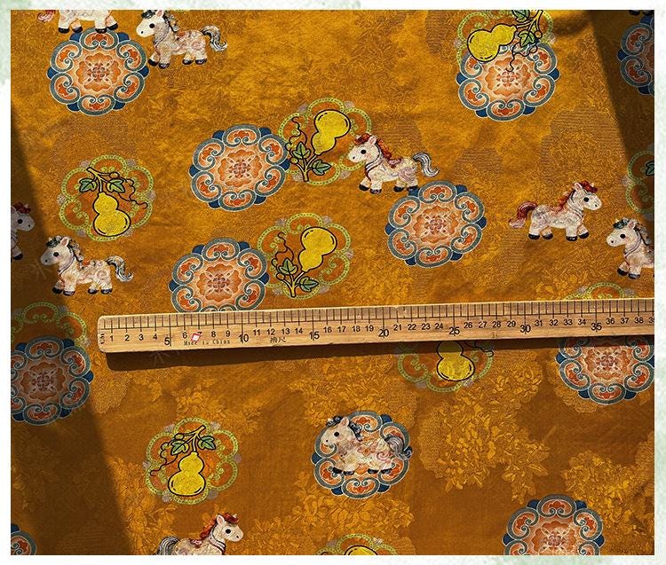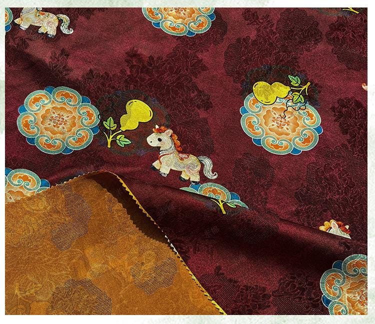 Horse Jacquard Rayon Fabric – Fortune & Prosperity Xiangyun Print, 59"W